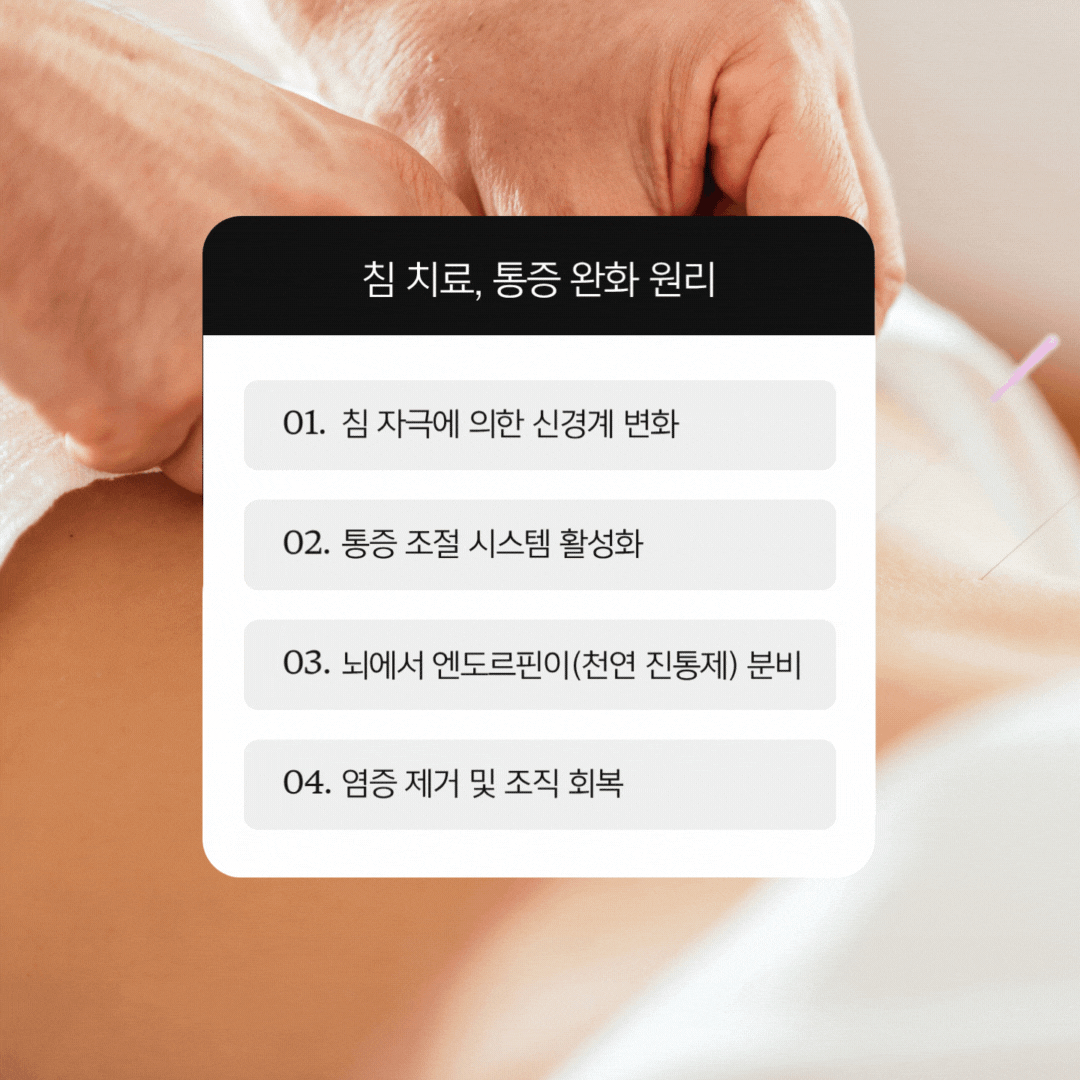 제가 침술을 시술할 때, 침이 몸에 들어가면 신경계가 즉각적으로 반응합니다. 이 과정에서 가장 중요한 건 우리 몸의 통증 조절 시스템이 활성화된다는 점이에요.